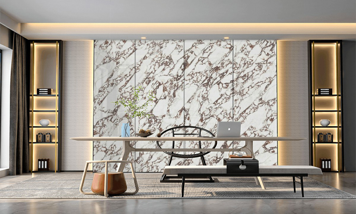 Sintered marble slab is originated from the naturals but is superior than the naturals on its appearance, cleanness and consistency. Sintered marble slabs are much stronger than the natural marble. Customized Size can be 3200*1600mm per panel. The installation, it’s much easier and labor-saving. And there is no need further maintenance,especially when the products are installed on interior elevation space, TV wall and wall in the bathroom, can be a whole piece from the bottom to the ceiling.It’s a cost-saving products and can be used in diversified spaces and places.  It’s a products with combination of real stone and porcelain.