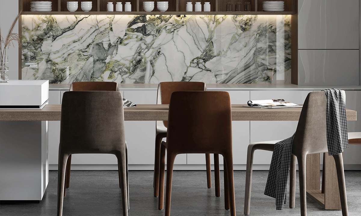 Sintered marble slab is originated from the naturals but is superior than the naturals on its appearance, cleanness and consistency. Sintered marble slabs are much stronger than the natural marble. Customized Size can be 3200*1600mm per panel. The installation, it’s much easier and labor-saving. And there is no need further maintenance,especially when the products are installed on interior elevation space, TV wall and wall in the bathroom, can be a whole piece from the bottom to the ceiling.It’s a cost-saving products and can be used in diversified spaces and places. It’s a products with combination of real stone and porcelain.